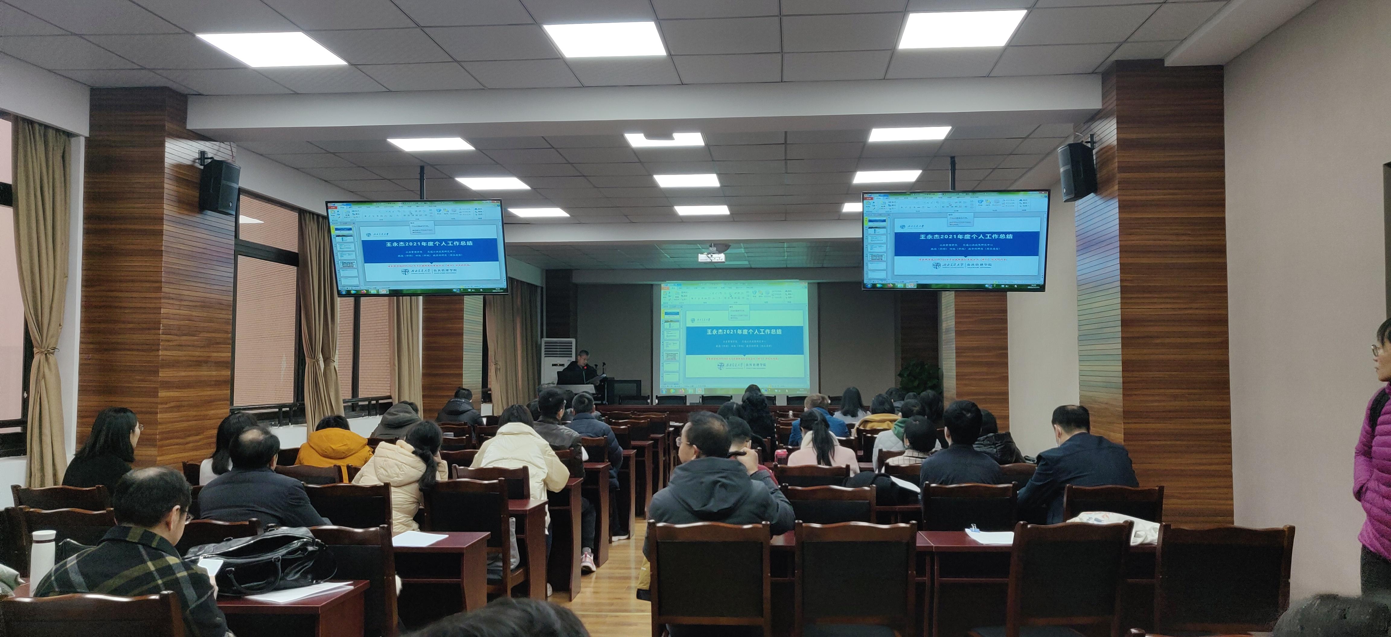 首先,由经理王永杰同志主持全院专任教师,科研专岗教师、公司学术团队、其他专技岗、管理岗和辅导员依次进行了工作述职。老师们均对个人在2021年度所做的工作进行了全面的梳理、总结和汇报。