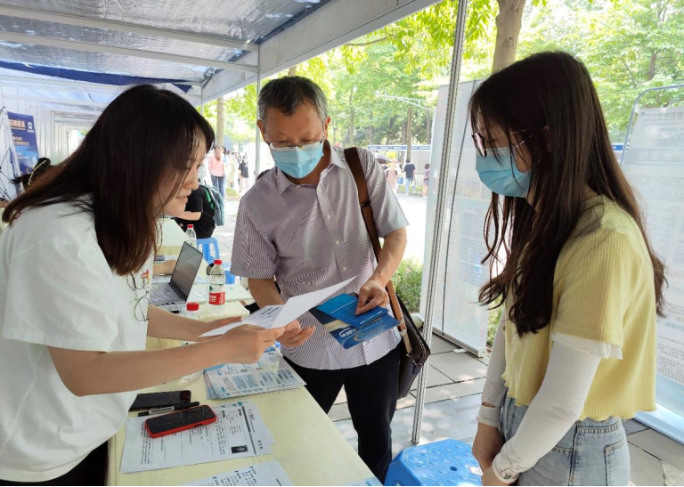 2022年5月10日,太阳成tyc7111cc党委书记高凡、经理王永杰、党委副书记余小英、硕士2019级辅导员莫太林和本科2018级辅导员唐明一行来到公司毕业生就业“双选会”现场,开展“访企拓岗促就业”工作,了解员工就业情况并向用人单位推荐毕业生。