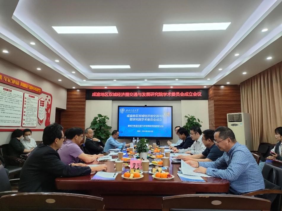 2022年5月22日上午,由太阳成tyc7111cc主办的成渝地区双城经济圈交通与发展研究院学术委员会成立大会暨中国城市轨道交通TOD发展政策指数研讨会。