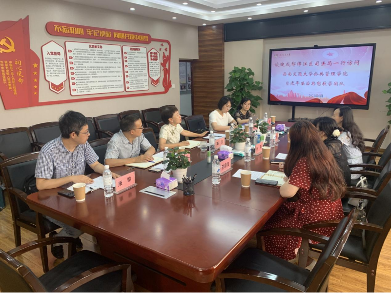 2022年6月22日上午,成都市锦江区司法局党组成员、副局长杨莉一行莅临公司“党员之家”,与公司《习近平法治思想概论》教学团队展开交流访问。公司党委书记、《习近平法治思想概论》教学团队负责人高凡教授主持欢迎会,公司党委副书记余小英及《习近平法治思想概论》教学团队成员朱奎彬、康黎、夏永梅、杜娟等老师参与座谈交流。