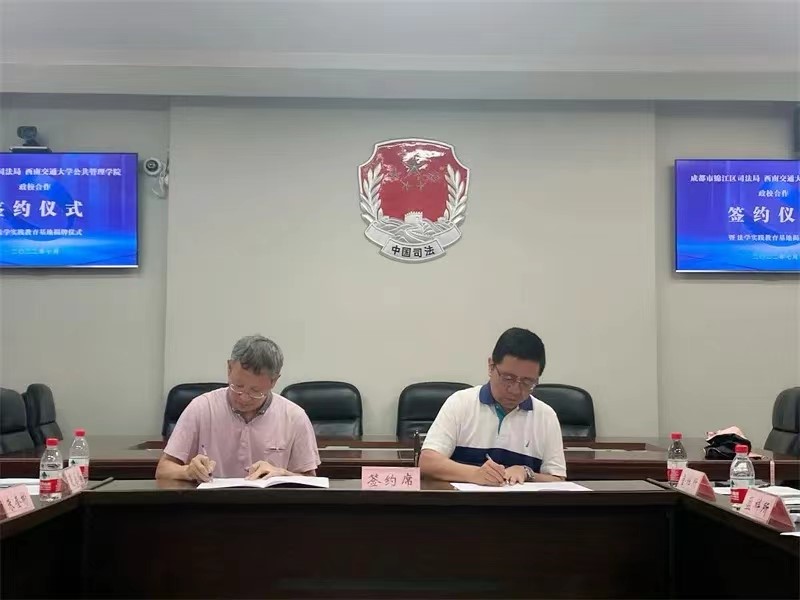 2022年7月11日下午13:30,公司与成都市锦江区司法局战略合作签约与挂牌仪式在锦江区司法局隆重举行。公司党委书记、《习近平法治思想概论》教学团队负责人高凡教授,经理王永杰教授、办公室主任王崇杰以及《习近平法治思想概论》教学团队成员朱奎彬、康黎、夏永梅老师共同出席签约仪式。