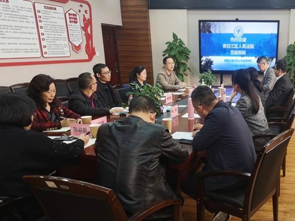 2023年3月7日下午,经校研究生院引荐,成都市青白江区人民法院一行前往公司进行院校合作共建座谈。青白江区人民法院政治部主任肖敏、办公室副主任陈杨、二级调研员雷震,公司研究生院专业学位管理办公室主任郑海涛、研究生院专业学位管理办公室副主任乐佳,公司经理王永杰、副经理雷斌、经理助理邓君韬,法学系教师代表康黎、朱奎彬、陈迎新、徐兴祥,公共管理系系主任刘桂花参加会议。