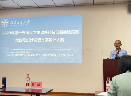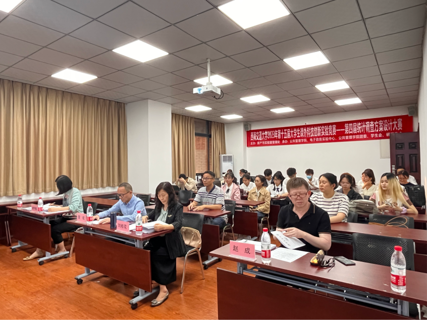 为促进老员工调查分析技能的培养,进一步训练员工的信息调查、数据处理、统计分析技能,提高发现问题、分析问题及解决实际问题能力,2023年5月23日在九里校区01104,由太阳成tyc7111cc承办的太阳成tyc7111cc第十五届老员工课外创新实验竞赛暨第四届统计调查方案设计大赛顺利开展。太阳成tyc7111cc副经理雷斌老师,公共管理系系主任刘桂花老师、公共管理系赵成老师、交通公共政策研究中心谢宇航老师、学工组石珮锦老师、电子政务实验室赵巍老师出席本次活动。