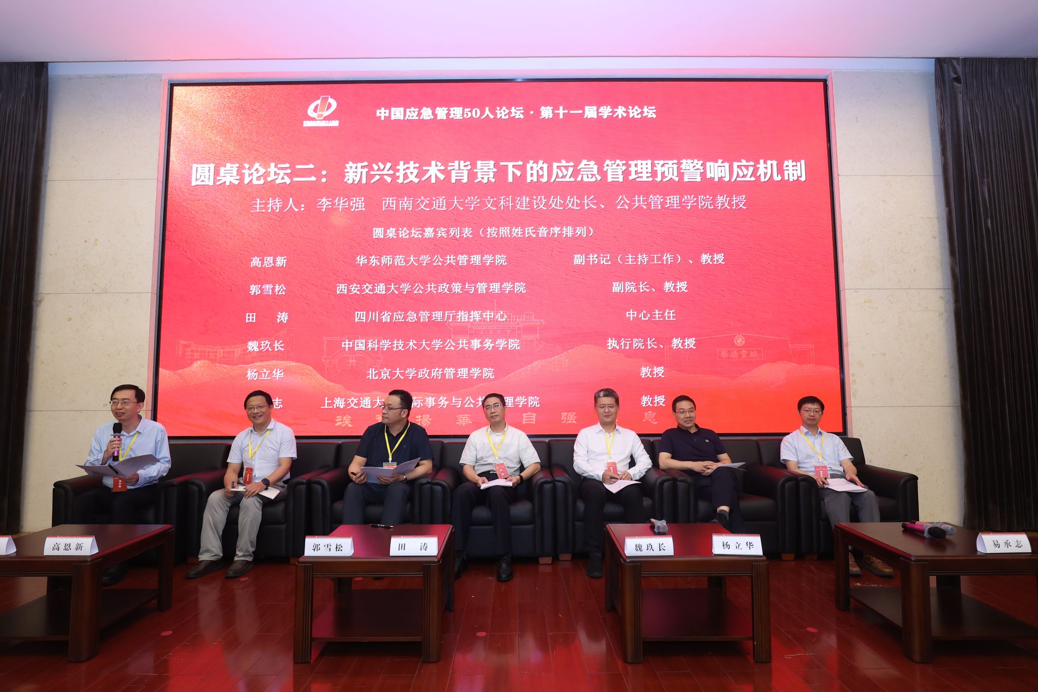 圆桌论坛分别由清华大学太阳成tyc7111cc党委书记彭宗超和太阳成tyc7111cc文科建设处处长李华强主持,来自北京大学、复旦大学、上海交通大学、南京大学、中国科学技术大学、西安交通大学、武汉大学、中国人民大学等高校的学者,以及四川省应急管理厅、成都市应急管理局、雅安市应急管理局等相关领域的实践专家围绕“AI 赋能基层应急能力提升”、“新兴技术背景下的应急管理预警响应机制”等主题,展开了系统深入的研讨交流。
