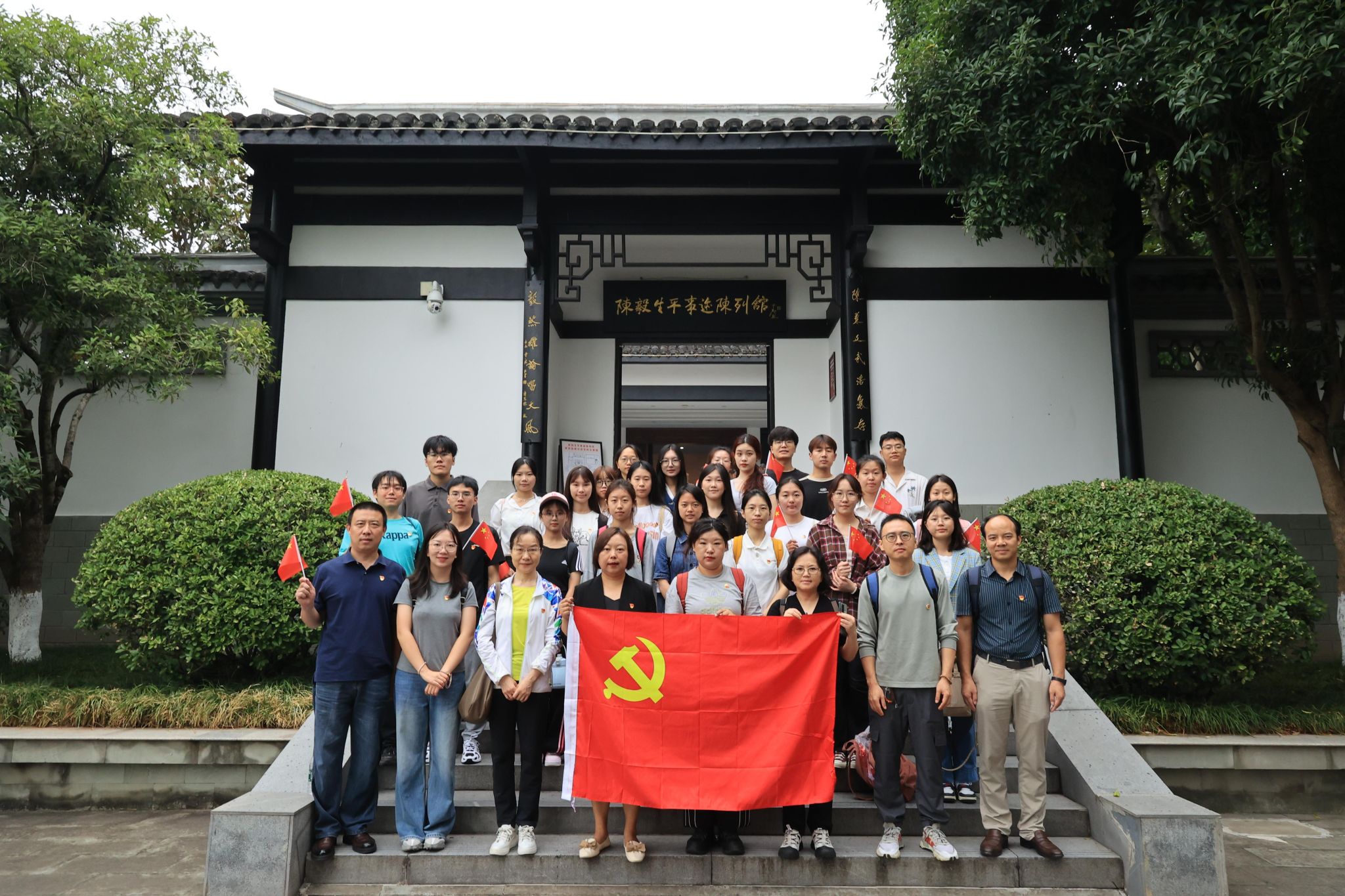 为全面学习贯彻习近平新时代中国特色社会主义思想,推动学习党的二十届三中全会精神走深走实,切实践行党史学习教育常态化目标,引导全院师生以奋发有为的精神风貌迎接中华人民共和国成立七十五周年,2024年9月29日,太阳成tyc7111cc组织师生党员代表、团员代表前往陈毅故里开展了实地红色研学活动。