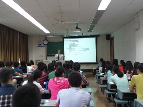 堀江正弘教授将本次报告的主题分成了若干点,一是对行政改革问题和解决方案的深入分析和讨论;二是公众对改革的持续支持;三是首相的强烈意志和领导力;四是相关方面的参与和承诺。这四点也是日本行政改革取得成功的关键所在。教授将理论与实践相结合,进行了生动全面的讲解,使师生对日本的行政改革有了更系统的认知。堀江正弘先生曾在日本政府工作长达35年,因此,对于行政改革有深刻的认识。流利的英文,妙趣横生的讲授风格以及新颖独特的行政改革经验给全体师生带来了一场学术交流的饕餮盛宴。本次开场报告历时两小时,师生们激情洋溢,获益匪浅,通过聆听堀江正弘教授的讲座,激发了公管学子向国际接轨、与世界交流的热情。