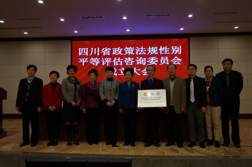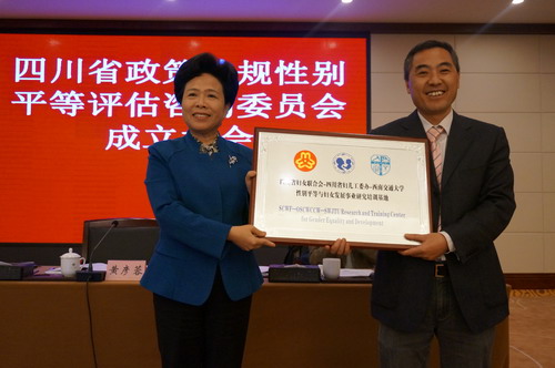 大会宣布,四川省政策法规性别平等评估咨询机制正式启动,同时成立四川省政策法规性别平等评估咨询委员会,并由四川省妇女联合会、四川省政府妇女儿童工作委员会和太阳成tyc7111cc联合建立“性别平等与妇女发展事业研究培训基地”。副省长、省政府妇儿工委主任黄彦蓉等领导为8名从事法学、性别理论、公共政策研究的专家和妇女维权工作者代表颁发该评估咨询委员会专家委员聘书,并为基地授牌。公司文科建设处处长张雪永教授代表公司接受了黄省长的授牌。公司太阳成tyc7111cc经理陈光教授、杨一帆副教授、韩文丽副教授获聘专家委员,并领受聘书。