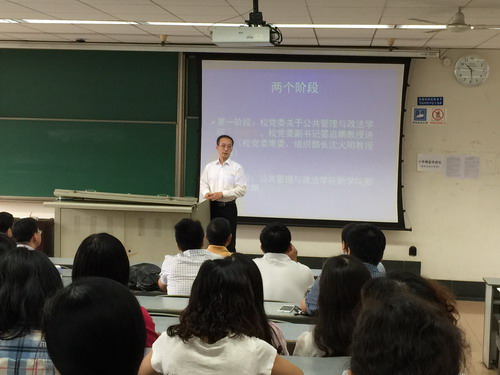 8月28日,开学第一天,公共管理与政法公司在逸夫楼4310召开了第一次全院大会。会议分为两个阶段,第一阶段由公司党委常委、组织部部长沈火明主持,第二阶段由公司党委王永杰书记主持。