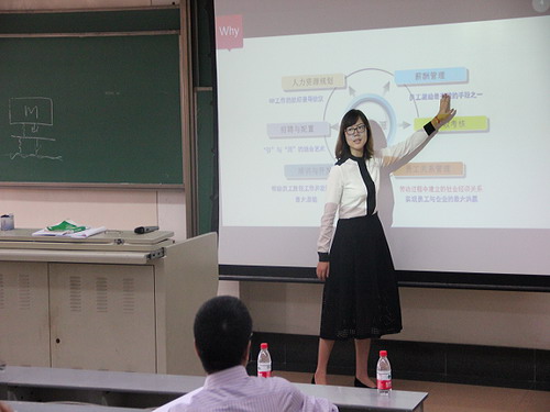 接着,五位参赛老师依次上台完成时长为20分钟的授课展示。第一位上台的是杨道现老师,杨老师主要对交通运输法这门课程的应用性、特色性和综合性三个方面进行了讲解。第二位是吕辉老师,主要讲授民事诉讼法相关内容,吕老师开场通过彭宇案庭审案例引出辩论原则感性认知,进而提出理性认知的内容。第三位林晶晶老师,从why、what、how,即为什么选择这门课程、这门课程能学到哪些知识、如何学好这门课程三个方面入手,阐述了绩效考核与薪酬管理这门课程。紧接着,严敏老师从公共管理逻辑,公共管理需要的知识以及公共管理培养的技能等方面对公共管理学进行阐述。最后李华强老师从电子政务——信息化浪潮与电子政务的兴起这个主题对信息化发展以及信息化背景之下的政府改革等方面通过实际案例结合进行了阐述。