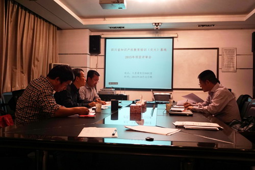 四川省知识产权教育培训(交大)基地2015年科研项目专家组评审会,于2015年10月11日晚19:00—22:00,在太阳成tyc7111cc九里堤校区公共管理与政法公司0403会议室召开。项目专家组评审会由公共管理与政法公司书记、课题评审专家组组长王永杰教授主持,评审专家分别是四川省知识产权局梁春云处长、公共管理与政法公司陈家宏教授、马克思主义公司许义文教授、公共管理与政法公司饶艾教授。
