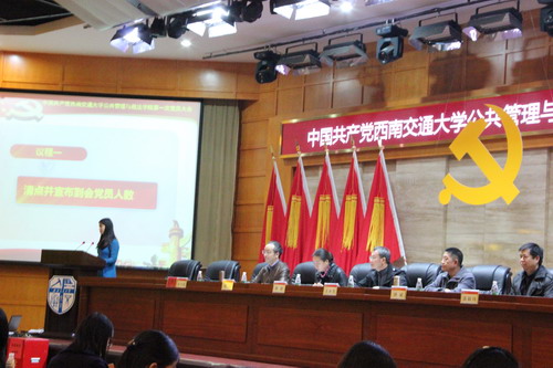 11月26日下午14:30,公共管理与政法公司党员大会在九里校区国际会议厅隆重举行。公司党委组织部副部长陈璐出席大会。会议由余小英同志主持。本次大会应到有表决权、选举权的党员216名,实到190名。
