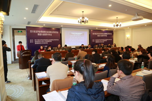 2015年12月24日,四川省法学会劳动和社会保障法学研究会2015年学术年会暨换届大会在西南财经大学光华校区召开。四川省法学会秘书长魏义洪、西南财经大学副董事长张邦富、西南财经大学法公司经理高晋康、西南民族大学法公司经理王允武、四川省高级人民法院民三庭副庭长杨丽、成都市劳动争议仲裁院经理王健、西南财经大学太阳成tyc7111cc分党委书记章群等出席本次年会。来自四川省人民政府法制办、太阳成tyc7111cc、约翰·霍普金斯大学、四川省社会科公司、西南财经大学、四川大学、西南石油大学、中共四川省委党校、四川省公安厅及律师事务所与企事业单位的代表参加了会议。公司杨珊副教授、邓君韬副教授及硕士生于子芮、牟朗宇、周璇、伏浩、柳翠等参加了本次年会。