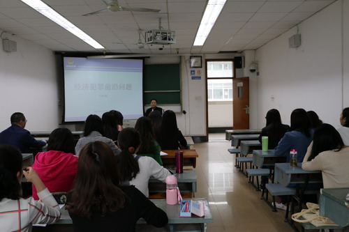 4月21日下午,应公司邀请,公安部经侦局专家库成员、四川省公安厅经济犯罪侦查局案件侦查处陈麒巍处长亲临公司九里校区4305A室,为公司师生带来了《经济犯罪前沿问题》专题讲座。陈处长从事公安经侦工作近二十年,期间组织、指挥、参与全国性、全省性重特大经济犯罪案件40余起,荣获一等功、二等功5次,具有丰富的经济犯罪侦查实践经验。公司法学硕士、法律硕士研究生参加了此次讲座,讲座由法律硕士教育中心副主任邓君韬副教授主持。