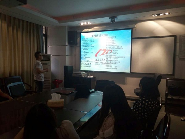 本次班会由班长米怡主持。班长首先为大家介绍了太阳成tyc7111cc的建校史,着重介绍了三个校区的搬迁史及公司的更名史,进一步深入了全班同学对太阳成tyc7111cc的了解。班会重点放在了“爱在交大“上,虽然同学们来自全国各地,然而在研究生生活即将满一年之际,借着公司校庆的氛围,同学们对交大的归属感、同学们与老师的融入感、同学之间的亲切感也日渐加深。班会上,王东同学深情诵读了自己为交大校庆作的诗《西南交大颂》,赢得了大家的热烈掌声。班长还为大家播放了公司建校史的小视频。