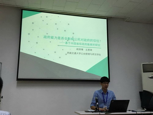 公司硕士研究生赵慧增在王思琦副教授指导下合作撰写的论文《政府能力是否会影响公民对政府的信任?——基于中国省级政府数据的研究》通过了遴选,受邀参加了此次研讨会并进行汇报,其所在场次邀请了清华大学杨永恒教授、上海交通大学刘帮成副教授和罗格斯大学张亚红副教授作为点评嘉宾。发言中,赵慧增同学从研究内容、研究方法和研究发现等方面进行了阐述并与各位学者进行了深入交流,得到了各位嘉宾的好评。