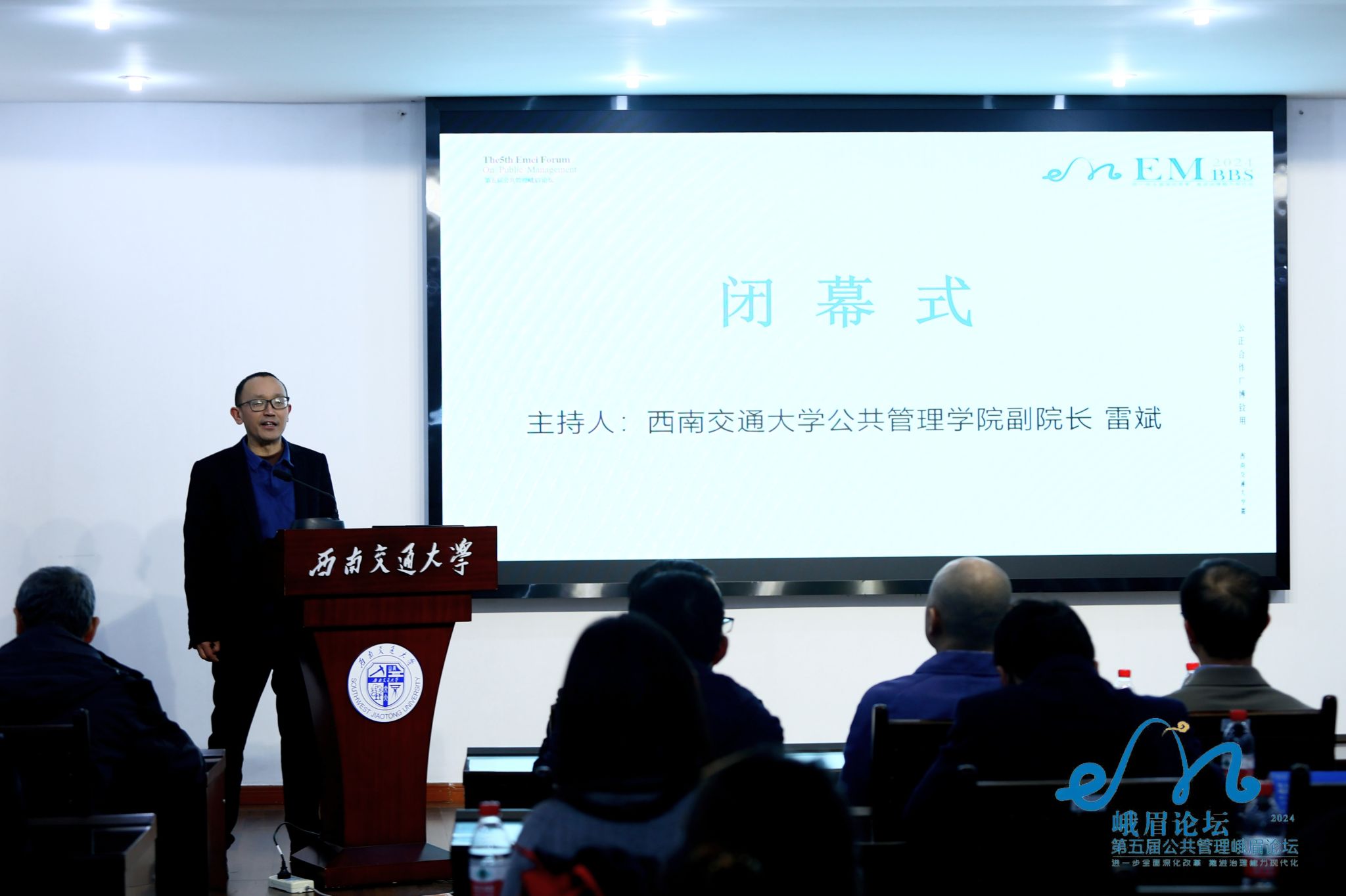 最后,论坛闭幕式在太阳成tyc7111cc峨眉校区科技交流中心举行,由太阳成tyc7111cc副经理雷斌主持。罗梁波教授、太阳成tyc7111cc公共政策研究中心副主任王路昊研究员和徐换歌副研究员分别对青年论坛、技术治理分论坛、基层治理分论坛的交流点评情况进行了概述。太阳成tyc7111cc经理王永杰教授对本届论坛进行总结发言。王永杰教授向所有为本届论坛贡献智慧的专家学者表示衷心感谢,并表达了对下届峨眉论坛再次相聚的期盼。