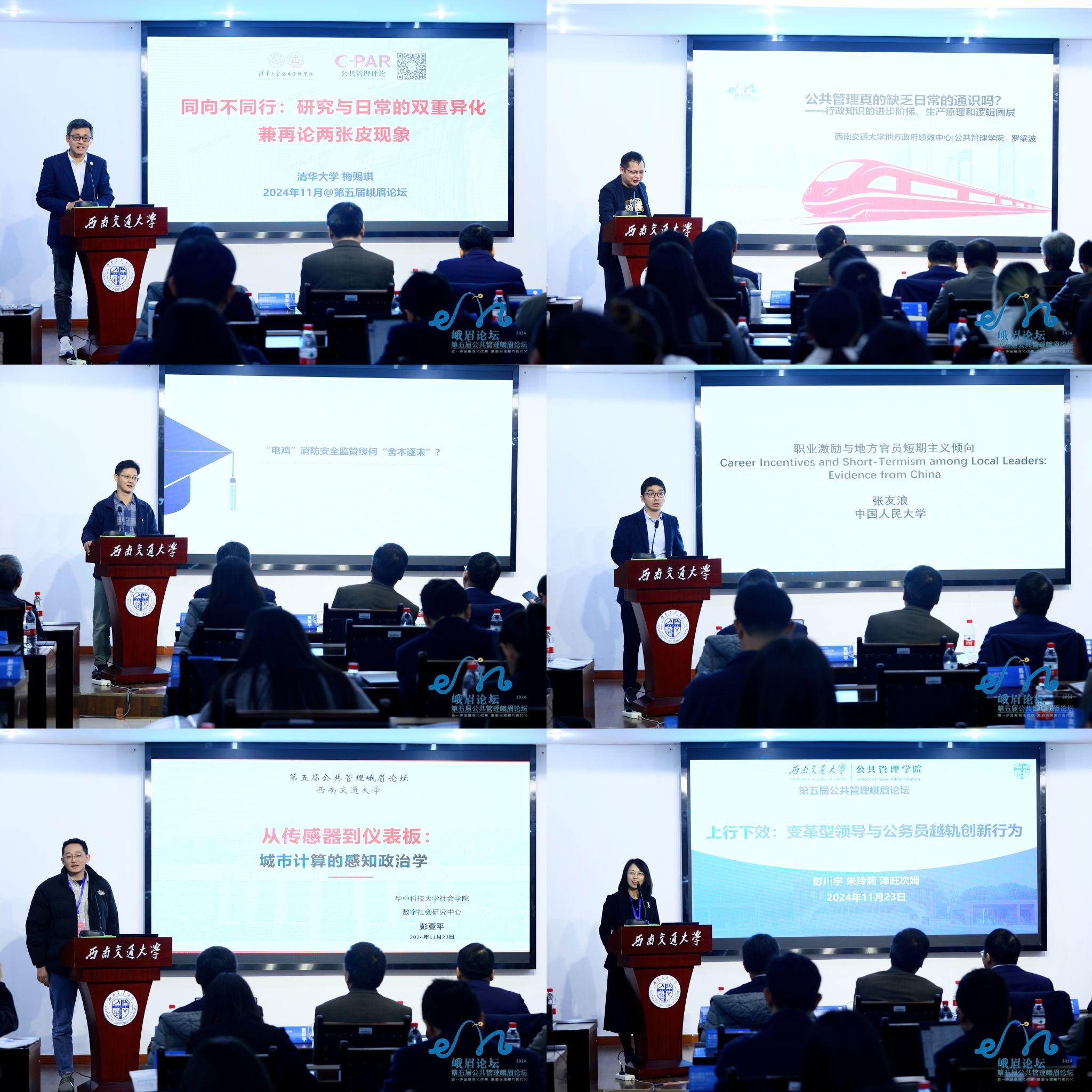 2024年11月23日,由太阳成tyc7111cc主办的第五届公共管理峨眉论坛在太阳成tyc7111cc峨眉校区顺利召开。论坛围绕“进一步全面深化改革、推进治理能力现代化”主题,来自清华大学、北京大学、上海交通大学、浙江大学、中国人民大学、西安交通大学、同济大学、厦门大学、华中科技大学、华南理工大学、湖南大学、重庆大学、四川大学、电子科技大学等全国40余所高校的近120名公共管理专家学者参加了本次论坛。
