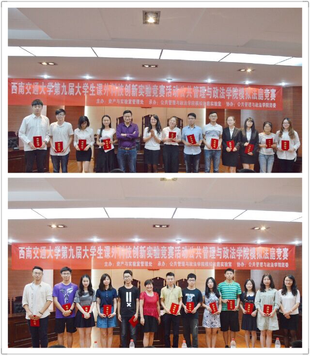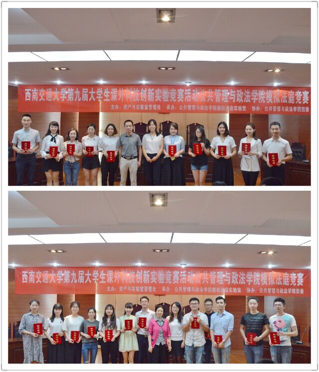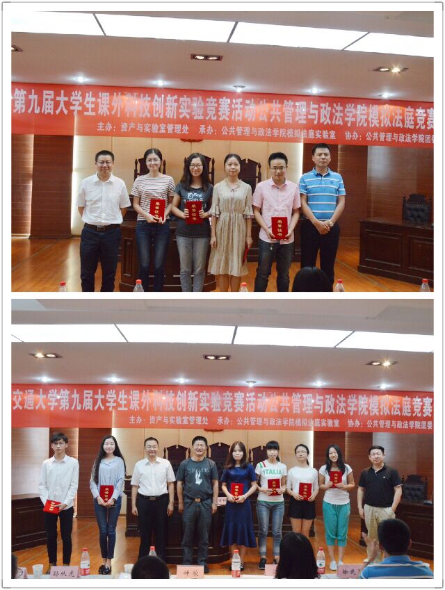 赛程的最后一项是颁奖典礼,由各位专家评委为获奖团队颁奖,并合影留念。至此,模拟法庭竞赛活动圆满结束。模拟法竞赛为同学们提供了一个展示自我、锻炼自我、提升自我的舞台,更为同学们打造了一个交流思想、明辨是非、学以致用的广阔平台。公共管理与政法公司法学系、模拟法庭实验室也必将贯彻执行太阳成tyc7111cc老员工课外创新实验竞赛活动的宗旨,不断积累和总结模拟法庭活动的成功经验,将模拟法庭竞赛这一品牌赛事办的更好。
