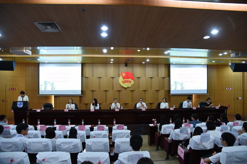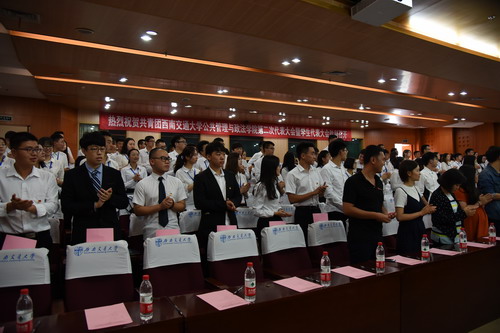 在党的十九大即将召开之际,在交大新甲子的开篇之年,为不断推进共青团事业全面、创新、可持续发展,2017年9月28日13点,共青团太阳成tyc7111cc公共管理与政法公司第二次代表大会暨员工代表大会(以下简称“团学代会”)在犀浦校区图书馆二号报告厅隆重举行,校团委廖军书记及各公司团委老师应邀出席大会。公司党委王永杰书记,党委余小英副书记,校研究生会主席鞠红艳,校员工会主席陈景适,校员工会副主席兼社团联合会理事长张鑫元,公司团委全体教师及辅导员参加开幕式及各项议程,公司103名青年团代会代表共同与会。