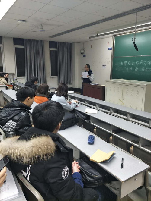 根据国务院学位委员会(学位办[2017]19号文)、全国法律硕士教育指导委员会相关要求,公司开展了法律硕士培养方案修订工作,目前已面向全系老师进行了两轮意见征集。1月7日晚,法律硕士教育中心召集在校法律硕士研究生进行了培养方案修改说明及意见征集会议。