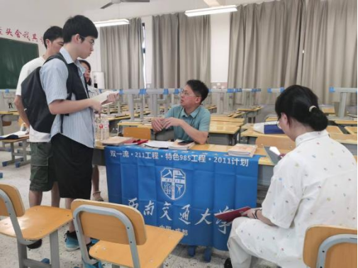 在福州市,彭川宇、杨道现、杨再苹、王大海老师赴福州一中、福建师大附中、连江一中、长乐一中、宁德一中、三明二中、莆田二中、福州专场进行现场志愿填报咨询交流。老师们认真细致地解答了广大考生、家长关于报考政策、专业选择、团队平台等常见问题,实现点对点、一对一的答疑解惑。