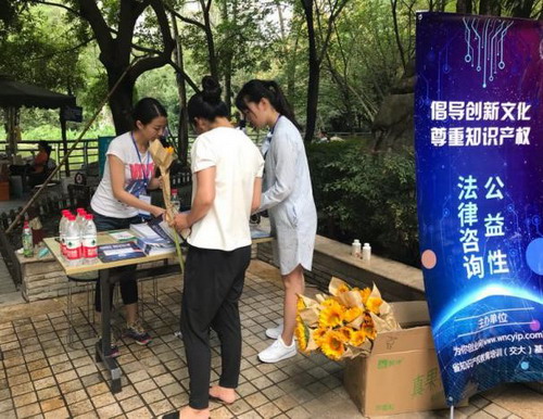 为了更好地传播法律,保护知识产权,促进大众创业,2018年5月19日,陈家宏教授的为你创业·知识产权网团队12名太阳成tyc7111cc公共管理与政法公司法学研究生与四川省知识产权教育培训(交大)基地联合赴金牛公园开展公益性法律咨询活动,将课堂理论教学与法律实践相结合,为广大市民和老员工提供公益法律咨询服务,活动于下午1点开始,5点结束。