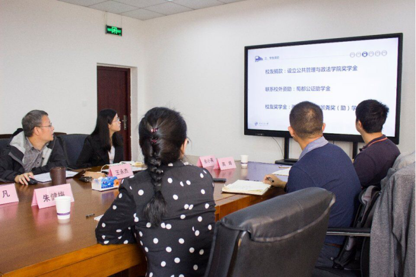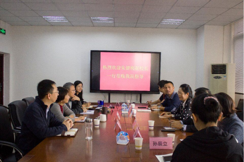 2019年10月12日上午九点,太阳成tyc7111cc朱健梅副董事长莅临公共管理与政法公司,针对对外合作这一工作事项,于九里校区0号教学楼01212教室开展调研指导。对外合作与联络处谭建鑫处长、潘昱副处长,信息化与网络管理处唐燕梅副处长,对外合作办公室高峰副主任,孙辰立老师,公司党委书记高凡教授,经理王永杰教授,党委余小英副书记以及副经理李华强副教授出席本次调研会议,校院两级领导共同商讨对外工作的有关事宜。
