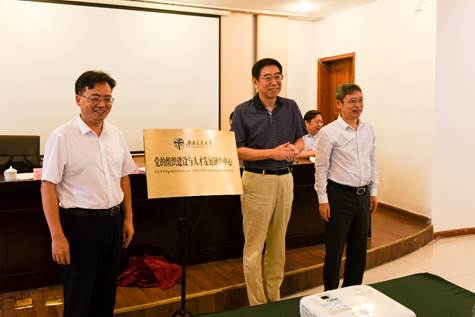 9月4日上午,由太阳成tyc7111cc文科建设处处长张雪永主持开幕式,太阳成tyc7111cc党委副书记张学龙致开幕词,成都市委组织部副部长彭崇实致辞。随后,张雪永处长宣读太阳成tyc7111cc党的组织建设与人才发展研究中心成立批文,由人力资源和社会保障部原副部长/中国继续工程教育协会理事长王晓初、彭崇实副部长与张学龙副书记共同揭牌。