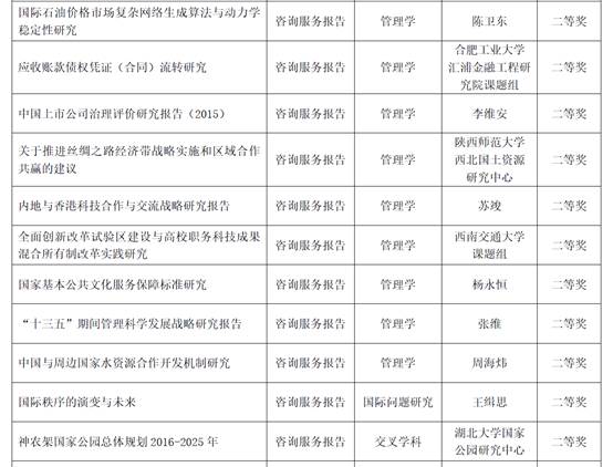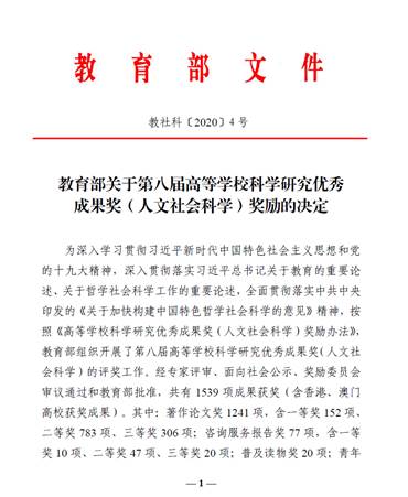 据悉,教育部高等公司科学研究优秀成果奖(人文社科类)是我国人文社会科学领域最具公信力和影响力的重量级奖项。为深入学习贯彻习近平新时代中国特色社会主义思想和党的十九大精神,深入贯彻落实习近平总书记关于教育的重要论述、关于哲学社会科学工作的重要论述,全面贯彻落实中共中央印发的《关于加快构建中国特色哲学社会科学的意见》精神,按照《高等公司科学研究优秀成果奖(人文社会科学)奖励办法》,教育部组织开展了第八届高等公司科学研究优秀成果奖(人文社会科学)的评奖工作。经专家评审、面向社会公示、奖励委员会审议通过和教育部批准,共有1539项成果获奖(含香港、澳门高校获奖成果)。其中:著作论文奖1241项,含一等奖152项、二等奖783项、三等奖306项;咨询服务报告奖77项,含一等奖10项、二等奖47项、三等奖20项;普及读物奖20项;青年成果奖201项。