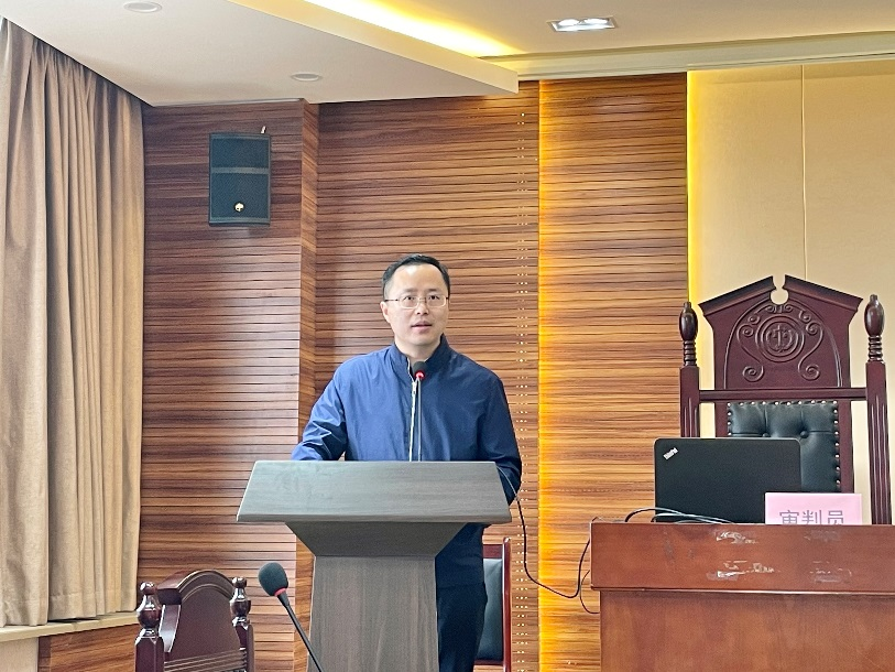 比赛正式开始前,邓君韬副教授上台致开幕辞,他指出本次校级模拟法庭竞赛,正处在交大125年校庆以及建党100年周年之际,“竢实扬华、自强不息”的交大精神,倡导的就是通过务实求真、脚踏实地的育人精神,培养服务建设国家的各类优秀人才。要建设社会主义强国,法治是重要保障,宪法第五条规定“中华人民共和国实行依法治国,建设社会主义法治国家”。而法治人才的培养,除了课堂教学,实践教学是必不可缺的一环,希望大家能够通过实践训练,更身临其境感悟法学魅力,更好的遵守规则意识,更多的增进法治信仰,在法制框架内,通过法律的理解与运用,维护当事人利益最大化;在既定法律原则与法条规定前提下,做出一个情、理、法并重的裁判。希望同学们保持对法律的热爱和敬仰,为我国今后的法制建设做出贡献。