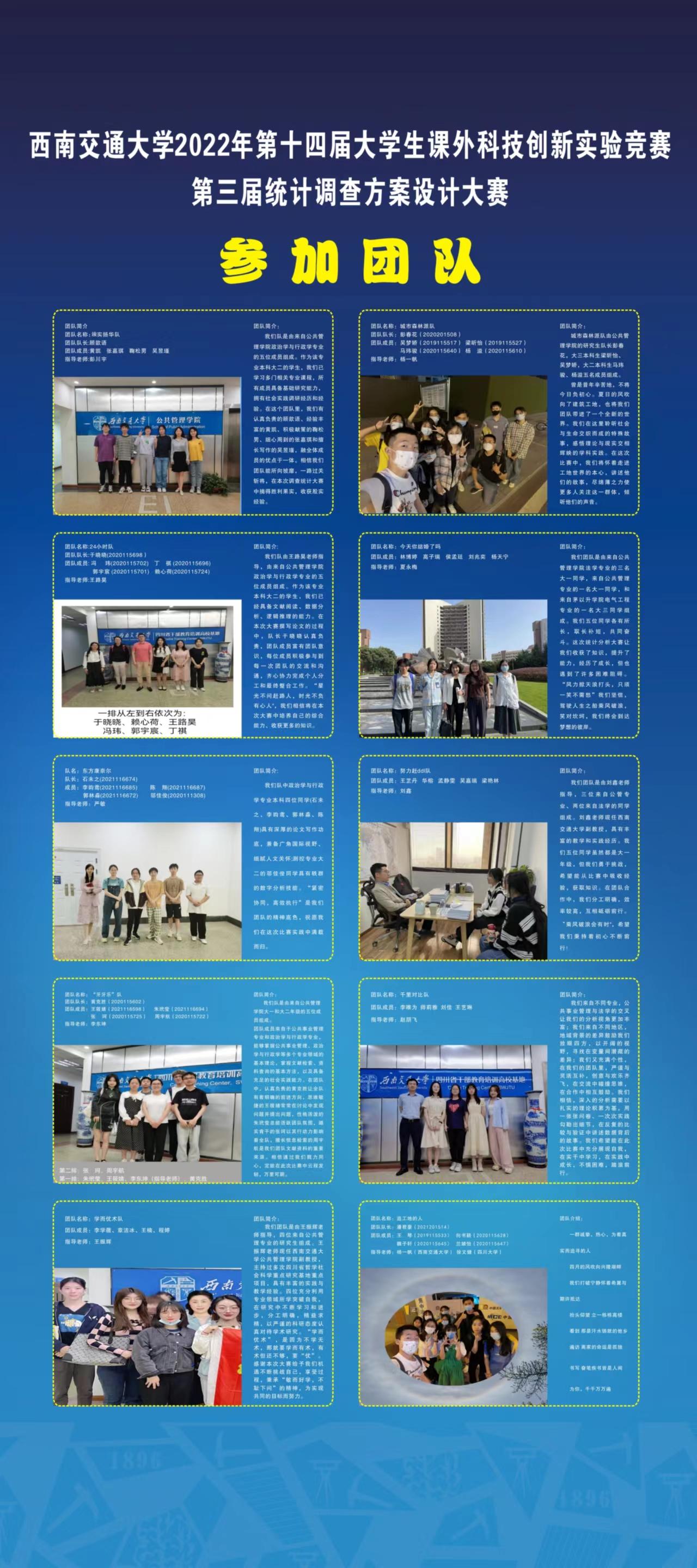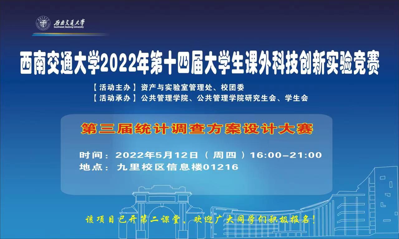 太阳成tyc7111cc第十四届老员工课外科技创新实验竞赛——第三届统计调查方案设计大赛由资实与实验室管理处主办,太阳成tyc7111cc、太阳成tyc7111cc研究生会和太阳成tyc7111cc员工会承办,此次大赛共有14支队伍报名,最后收到10份调查分析报告,各队伍在调查报告中聚焦公共管理热点问题,用建设性态度,积极研究我国改革开放和现代化建设过程中出现的新情况、新问题。现对第三届统计调查方案设计大赛赛事安排如下: