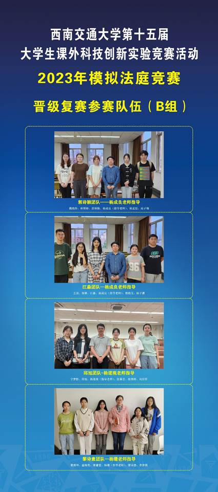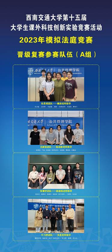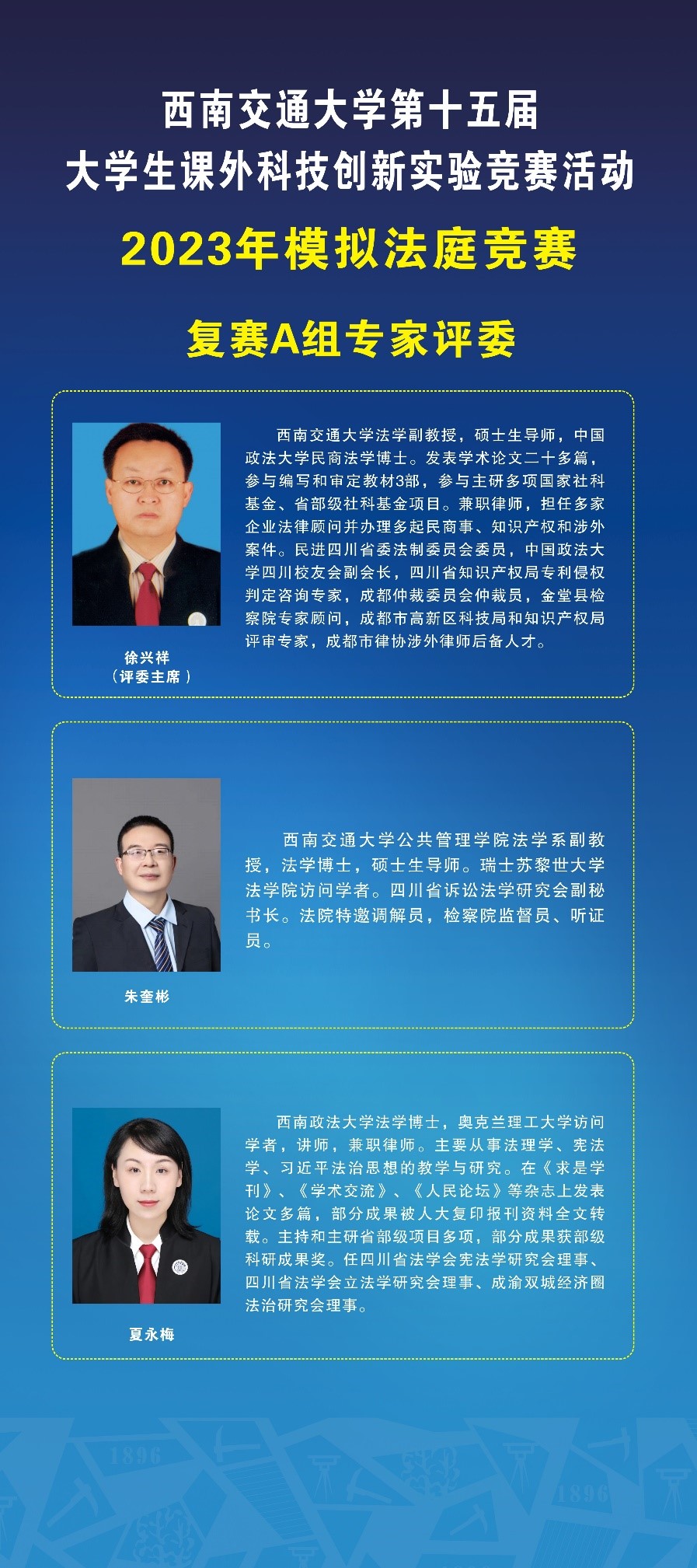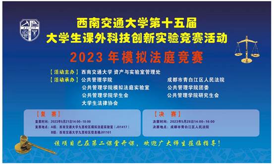 由太阳成tyc7111cc资产与实验室管理处主办,太阳成tyc7111cc、成都市青白江区人民法院、太阳成tyc7111cc模拟法庭实验室、太阳成tyc7111cc团委、太阳成tyc7111cc员工会、研究生会、老员工法律协会承办的太阳成tyc7111cc第十五届老员工课外科技创新实验竞赛2023年模拟法庭竞赛于4月初拉开帷幕,本次竞赛案例由成都市青白江区人民法院提供,模拟法庭张荣荣老师改编。公司研究生、本科生组成共18支参赛队参加了本次模拟法庭竞赛。在初赛中各参赛团队根据竞赛案例案卷材料,提交了包括民事起诉状、民事答辩状、代理意见书、类案检索报告等200多份司法文书,由青白江区法院三位民庭庭长进行匿名评审,8支参赛队成功晋级,现通过抽签方式,分为A、B两组展开复赛。现对模拟法庭竞赛复赛赛事安排如下: