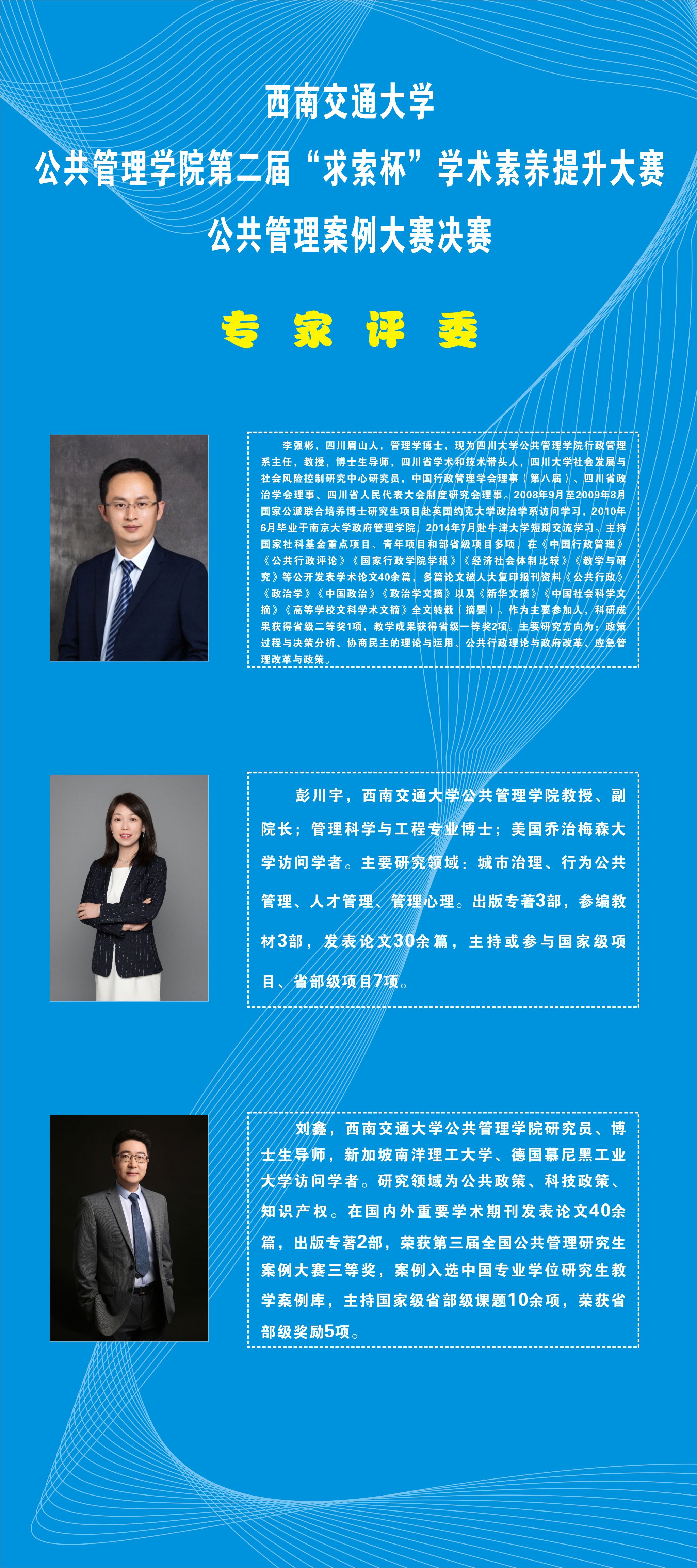 在复赛评选中,在导师回避、专业匹配的原则下,经过6名专家评审,两个分赛场组分别有一支参赛团队晋级第二届“求索杯”学术素养提升大赛——公共管理案例大赛决赛,现对决赛赛事安排如下: