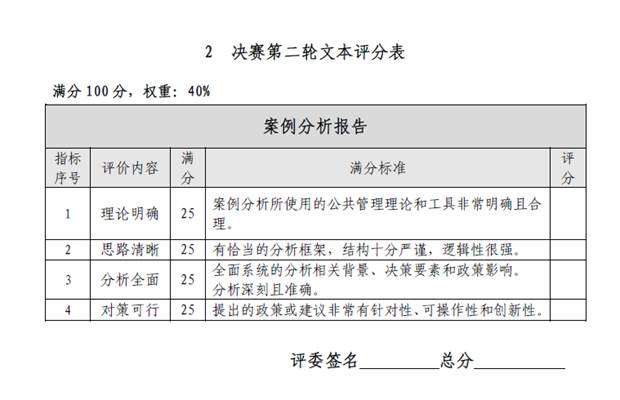 在初赛阶段,参赛队伍应紧密围绕我国当前公共管理、公共政策领域面临的重大或热点问题。选题范围包括但不限于:政府管理创新;地方治理创新;城市和社区治理问题;政治、经济、社会、文化、生态等领域的政策议题;公共与非营利组织管理;运用现代技术手段和方法改进公共治理等。