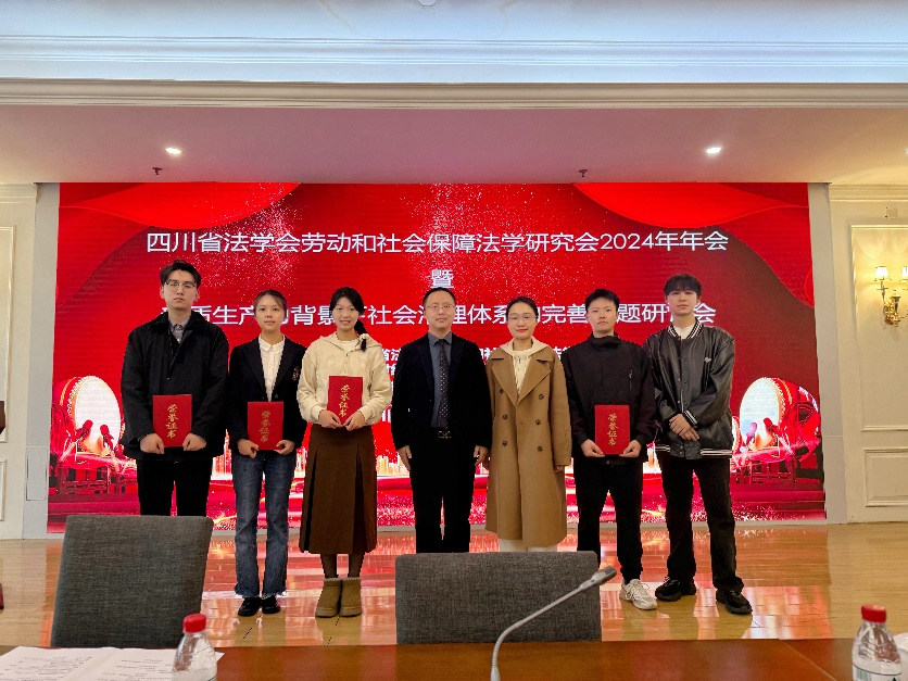 本次年会共有60余篇论文收录学术会议论文集,公司法学硕士研究生张腾宇与法律硕士研究生陈江涛完成的《灵活用工从业者职业伤害保障制度研究》荣获优秀论文评选三等奖;法学硕士研究生刘星宇与法律硕士研究生蒲淳完成的《新质生产力视域下工会在劳动保障中的功能优化》荣获优秀奖。