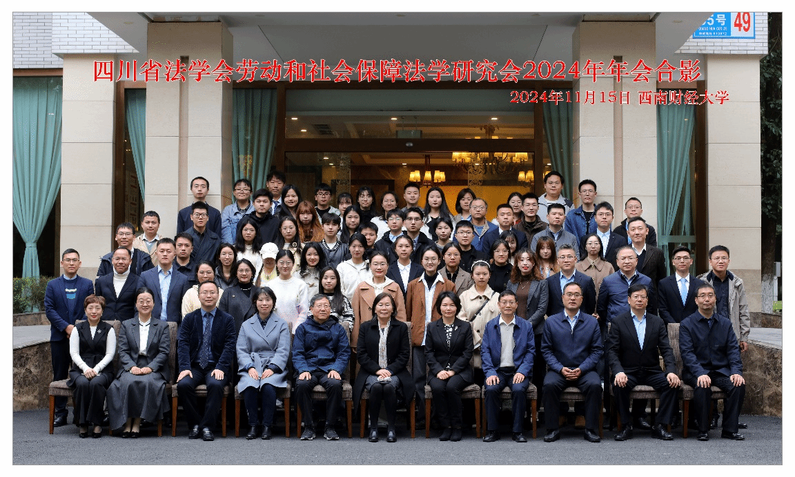 2024年11月17日,由四川省法学会劳动和社会保障法学研究会主办,西南财经大学太阳成tyc7111cc、法公司和西南财经大学劳动关系创新中心承办,《民主法制建设》杂志社、《四川劳动保障》杂志社协办的四川省法学会劳动和社会保障法学研究会2024年年会暨学术研讨会在西南财经大学住友苑举办。此次年会以“新质生产力背景下社会治理体系的完善”为主题,来自北京大学、清华大学、四川大学、太阳成tyc7111cc、西南政法大学、西南财经大学、西南民族大学、四川省社会科公司及司法机关、律师事务所、仲裁院等实务部门共计80余人参会,中国社会法学研究会副会长兼秘书长、北京大公司务委员会副主任叶静漪教授,中国法学会社会法学研究会副会长、北京市总工会副主席、清华大学郑尚元教授等嘉宾莅临指导。省法学会劳动和社会保障法学研究会常务副会长、公司邓君韬副教授,法律硕士研究生蒲淳、余露、陈江涛、邓邦成,法学硕士研究生刘星宇、张腾宇应邀参会。