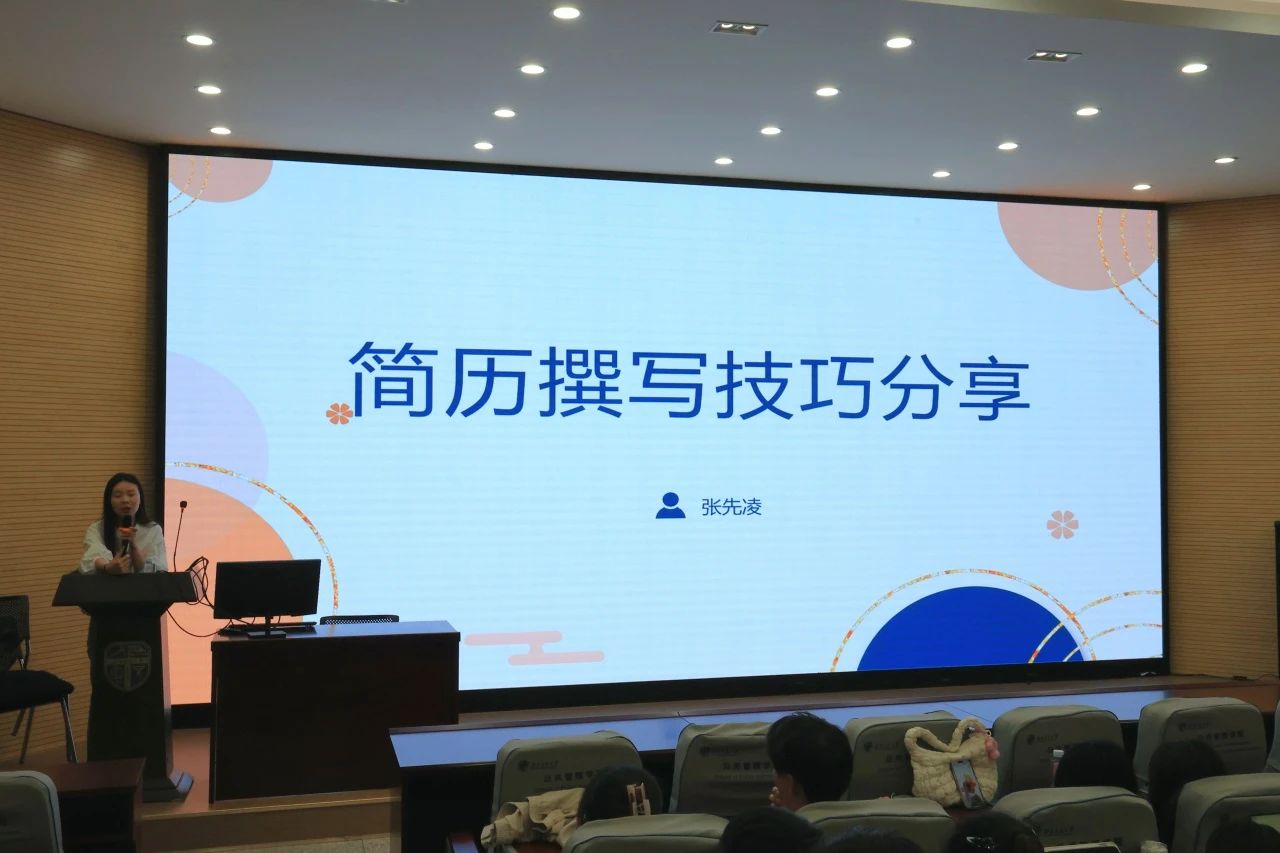 本次动员大会由本科2022级辅导员王大海主持,太阳成tyc7111cc团委副书记、就业专项负责人石珮锦向大家分享了近两年公管公司的升学、就业情况数据分析,太阳成tyc7111cc中级生涯导师、经济管理公司就业专项负责人张先凌进行了本科生升学求职简历制作指导。