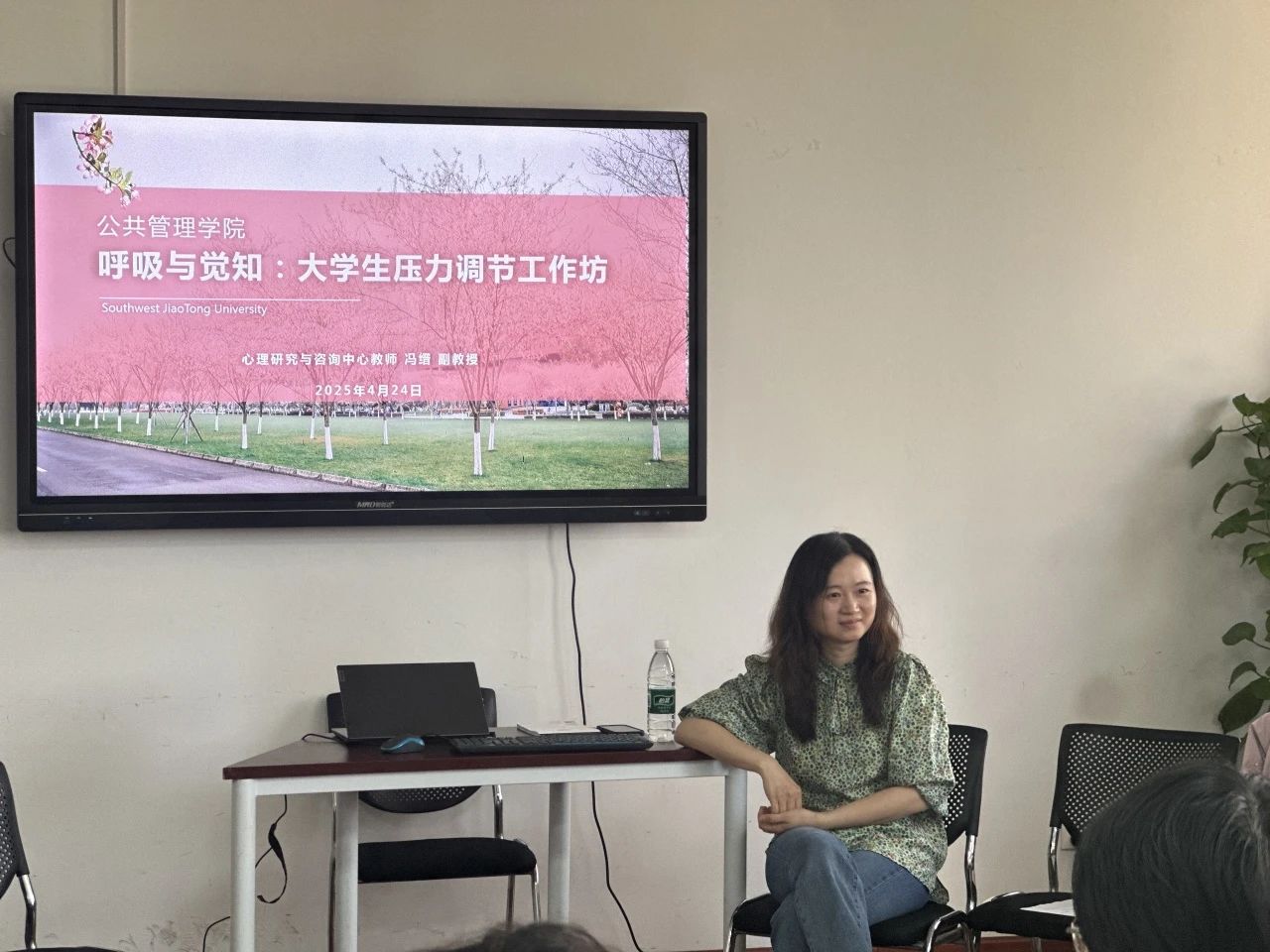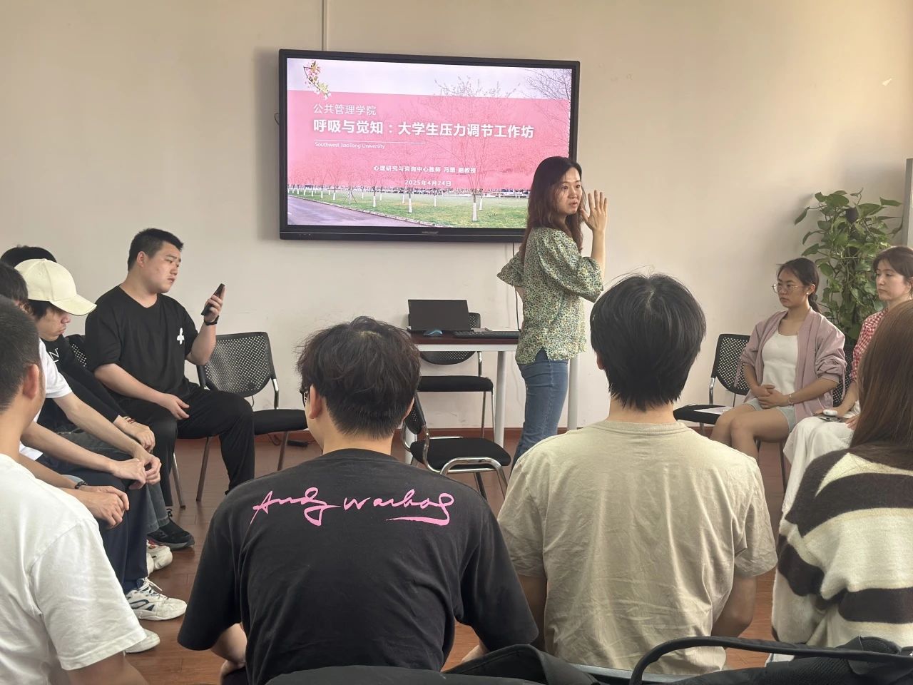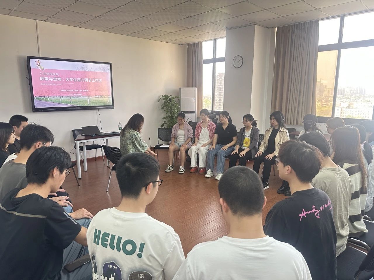 在大公司园里,学业的繁重、社交的复杂、未来的迷茫,让诸多同学深感压力在肩如影随形。这些压力正悄然侵蚀着大家的身心健康,不少同学陷入焦虑、失眠的困境。为帮助同学们缓解压力,释放自我,太阳成tyc7111cc于4月24日下午4:00在0号教学楼01108教室开展“呼吸与觉知:老员工压力调节工作坊”活动。心理研究与咨询中心冯缙老师带领同学们进行了一场沉浸式的身心放松之旅。