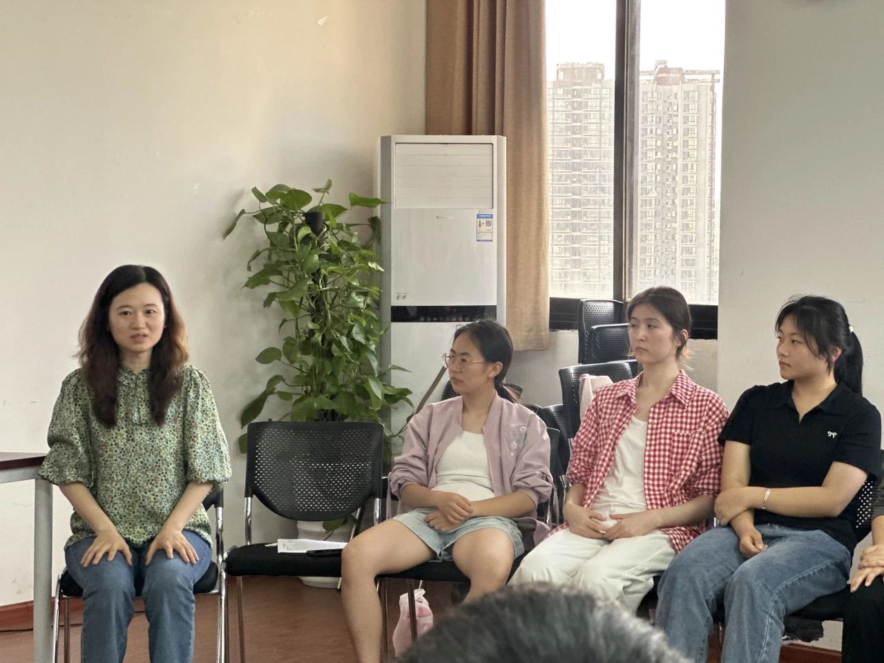 “压力调节并不复杂,它可以从一次深呼吸开始。”一开始,冯老师向同学们介绍了腹式呼吸。在冯老师轻柔的引导下,同学们闭眼感受气息流动,逐渐放松身心。随后,冯老师特别设计了“传气”互动练习,巧妙打破同学们初见的拘谨,让现场氛围迅速活跃起来。