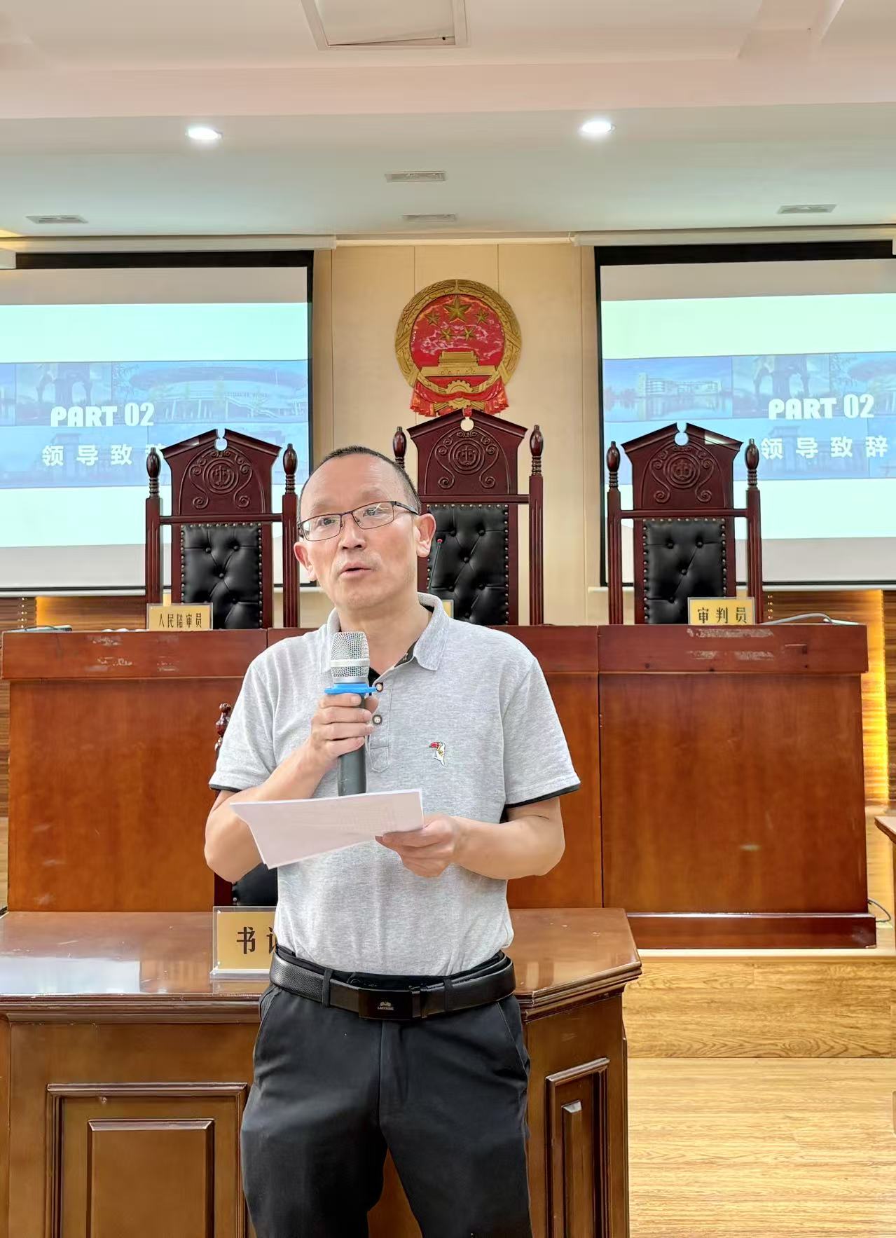 太阳成tyc7111cc副经理雷斌副教授出席开幕式并致辞,他强调,模拟法庭竞赛是连接法学理论与司法实践的桥梁,旨在让员工沉浸式熟悉司法审判流程、精准运用实体与程序法,在思想碰撞与团队协作中深化对法律职业的认知。他指出,赛事不仅是专业能力的“试金石”,更是法治信仰的“培育场”,期待同学们在庭审中展现青年学子的思辨锋芒,并预祝赛事取得圆满成功。