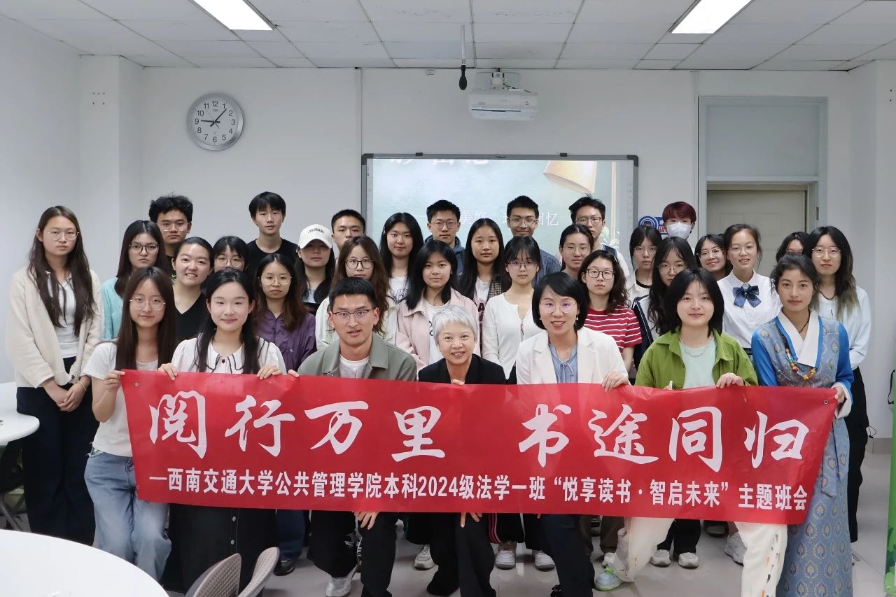 4月24日,本科法学2024-01班在“世界读书日”来临之际,举办以“阅行万里,书途同归”为主题的特色班会。班会以“书海寻踪”游戏破冰,为班会营造出轻松氛围。在“双导游带你看世界”环节中,夏永梅老师与陈泽东老师分享自身经历,鼓励同学培育阅读兴趣。“三人行,必有我师”环节中,三位同学结合家乡特色分享《哦,香雪》《画山绣水》《藏族风俗习惯》三本书籍。班会尾声,高凡书记以“read the word,read the world”为感悟,提出“阅读,悦读,越读”理念,鼓励同学坚持阅读,不断成长沉淀。随后班级成员于杜甫草堂开启“阅行合一”研学之旅,并于结束后收集同学反馈,收获广泛好评。、