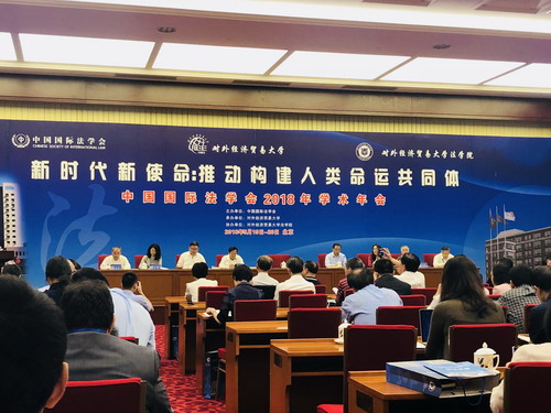 2018年5月19日-20日,由中国国际法学会主办、对外经济贸易大学承办、对外经济贸易大学法公司协办的“中国国际法学会2018年学术年会暨‘新时代新使命 推进构建人类命运共同体’学术研讨会”在北京国二招宾馆隆重召开。中国国际法学会成立于1980年,是外交部主管的全国性学术团体。来自外交部、商务部、最高人民法院、中国国际贸易促进委员会、中国国际经济贸易仲裁委员会等政府和实务部门以及全国各大高校、科研机构等从事国际法研究的专家学者等500余人参加了此次学术盛会。