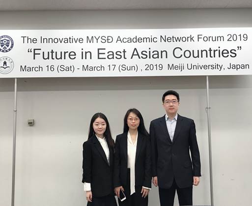 2019年3月16-17日,公司经理助理彭川宇副教授、刘鑫老师、代佳欣老师受公司委派,赴位于日本东京的日本明治大学参加主题为“Future in East Asian Countries”的The Innovative MYSD Academic Network Forum 2019国际学术会议。本次会议由日本明治大学主办,韩国延世大学、东北财经大学和太阳成tyc7111cc共同参与,日本明治大学教务主任、国际交流委员会委员长武田巧教授、政治经济学部部长小西德应教授、政治经济学部教务主任加藤久和教授等日方学者对公司教师的来访表示热烈欢迎。