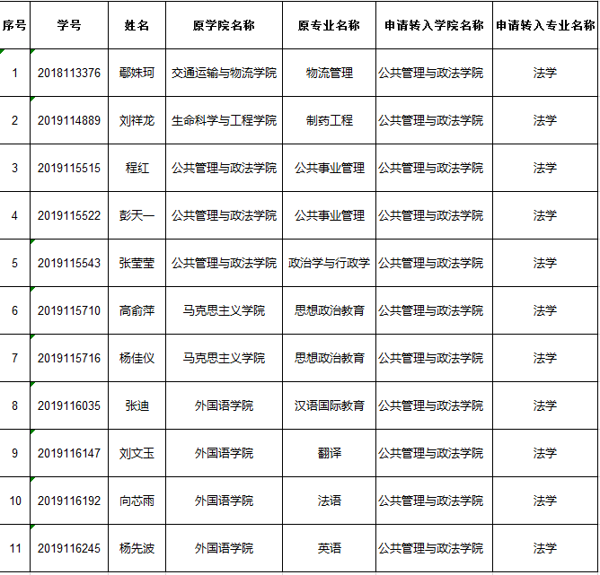 根据《太阳成tyc7111cc本科生转专业管理实施办法》文件规定、2020年转专业的整体工作安排和公共管理与政法公司本科生转专业实施细则,经员工本人网上申请,公司考核,拟同意以下同学转入相关专业学习: