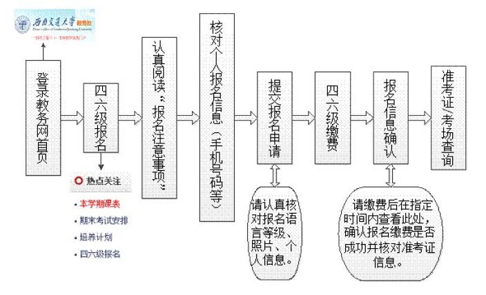 1、报名请登陆四、六级考试报名系统(网址:http://202.115.71.131/Cet/student/index.jsp),本科生用户名和密码分别为学号和教务网密码,其他员工用户名和密码为学号和身份证号码。