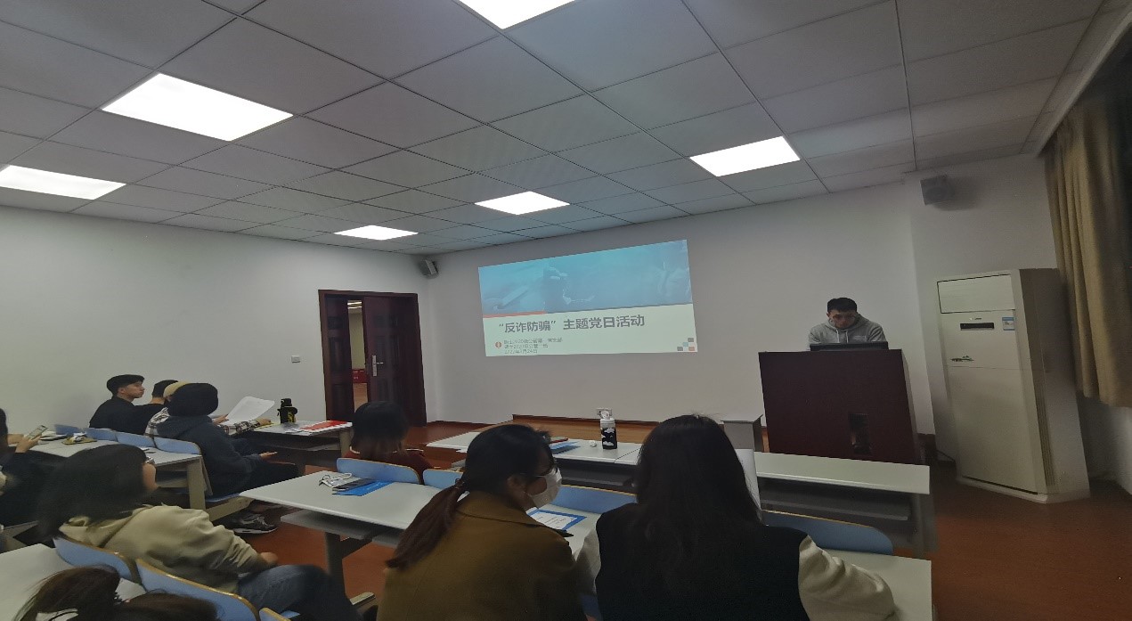 随着互联网,通信网络的快速发展,为广大群众的日常生活提供了诸多方便的同时也让不法分子有了可乘之机。近年来,电信诈骗案件频发,诈骗手段层出不穷,为进一步遏制电信网络诈骗案件高发态势,提高广大师生识骗、防骗的意识和能力,切实维护校园师生财产安全和切身利益,硕士2020级公共管理第一党支部于3月24日晚8:00在0-1105开展反诈防骗主题党日活动,由班长(预备党员)谢崇楷主讲,所有党员同志参与。