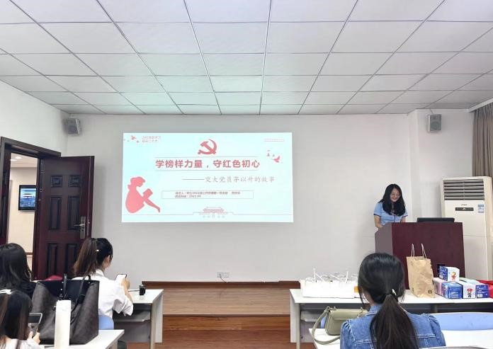 首先,活动在思想引领议程中拉开帷幕。贾庆华同志以“学榜样力量,守红色初心”为主题带领大家走进交大党员茅以升的故事,呼吁同志们用实际行动践行茅以升精神,做知行合一的奋斗者;梁舒心同志用“苔花如米小,也学牡丹开”的诗句激励大家勇于担当负责,积极主动作为,保持斗争精神,敢于直面风险挑战。由两个支部的优秀党员代表述党史故事并分享感想,从而不断推动同学们对党领导人民革命、建设、改革的历史进行深入了解,激发大家热爱党、热爱社会主义的感情。