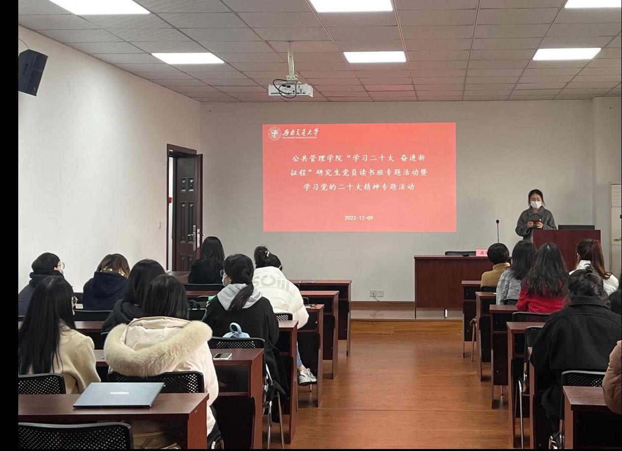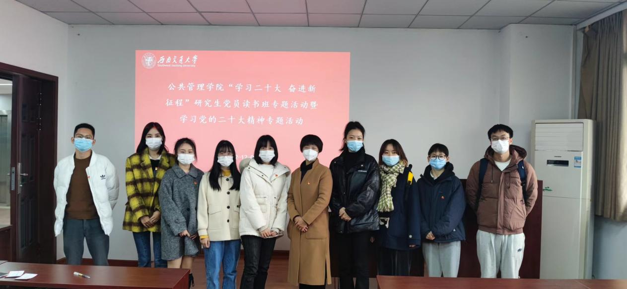 为深入学习宣传贯彻党的二十大精神,引导广老员工党员深刻认识“两个确立”的决定性意义,增强“四个意识”,坚定“四个自信”,做到“两个维护”,弘扬伟大建党精神,引导激励广老员工党员坚定理想信念,奋进新征程,建功新时代。2022年12月9日下午13:00,太阳成tyc7111cc在九里校区零号教学楼01105组织开展“学习二十大 奋进新征程”研究生党员读书班暨学习党的二十大精神专题活动。出席本次活动的领导嘉宾有公司党委书记高凡,公司研究生辅导员莫太林老师和赵诚然老师,公司2022级全体研究生党员参加了此次活动。