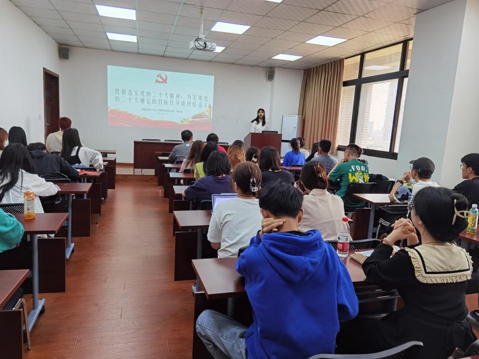 2023年4月27日下午16:00,太阳成tyc7111cc本科第一党支部在九里零号教学楼01104顺利举办“贯彻落实党的二十大精神:为实现党的二十大确定的目标任务而团结奋斗”主题党日活动。本次主题活动由杨溢同志作为领学人,组织支部成员紧密围绕二十大精神以及习近平总书记在二十届一中全会上的讲话等重要内容开展专题学习;并由支部成员围绕所学进行讨论,分享心得体会。