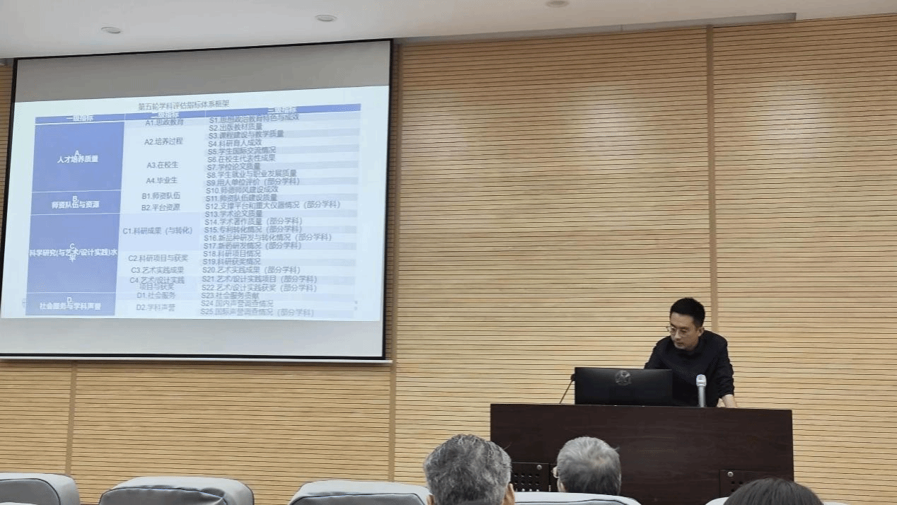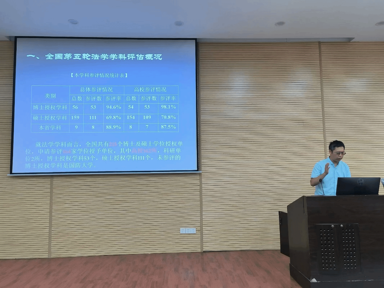 随后,法学系教师代表康黎、公共管理系教师代表王浩宇先后就法学和公共管理两个专业在教育部第五轮学科评估中的综合表现进行了汇报。